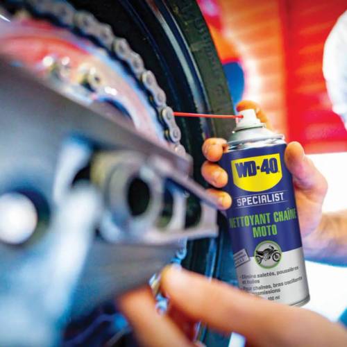 Le nettoyant chaîne moto WD-40 Specialist est spécialement conçu pour simplifier le processus de nettoyage de votre chaîne. Elimine rapidement saleté, crasse, poussière et huile des chaînes. Sèche rapidement. Ne laisse pas de résidus. Aide à réduire l’usure. compatible joints toriques en O, X et Z.