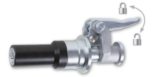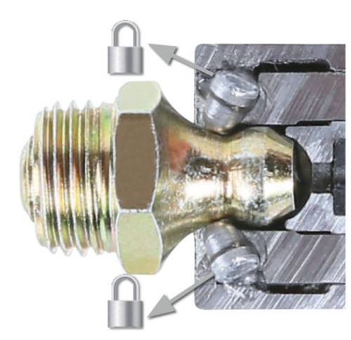 Une fois positionnée, elle reste sur le graisseur sans aucune aide. Déconnexion facile même avec tête sous pression. Filet M10x1 adapté à tous les types de pompe à graisse : électrique, pneumatique, manuelle...