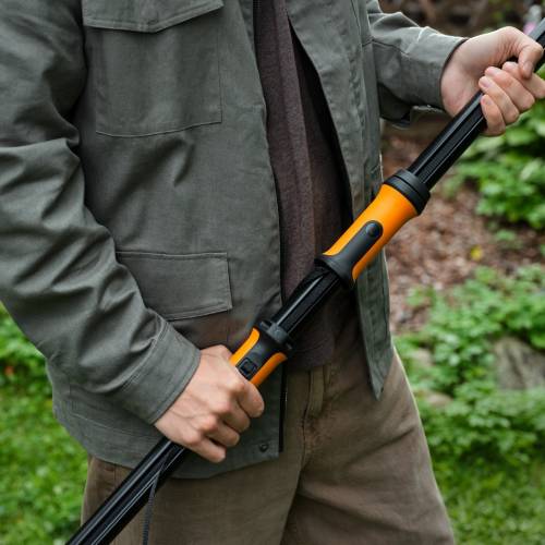 DualAction™ 2-en-1 : Changez de mode pour une coupe plus rapide ou une force accrue. Perche télescopique légère pour travaux en hauteur : la tige est réglable, la portée maximale est de 6 m (en tenant compte de la taille de l'utilisateur). La tête de coupe pivote à 230°, pratique de monter dans la couronne et de couper à l'angle souhaité.
