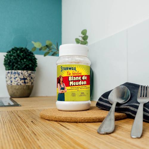 Le blanc de Meudon est un produit naturel issu de l'extrait du sel gemme depuis le Xe siècle. Idéal pour nettoyer et faire briller les métaux, y compris l'argent, sans les rayer. Entretenir le marbre. Dégraisser sans rayer. Polir. Fabriquer une crème à récurer. Faire briller les vitres et miroirs. Ce produit est également utilisé pour décorer les vitres, notamment à l'approche de Noël. Il permet de réaliser des économies et de réduire l'impact environnemental grâce à un dosage correct.
