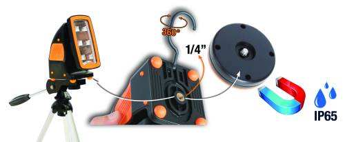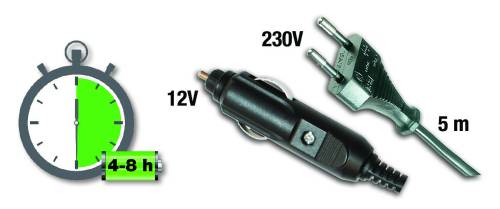 Etudier pour résister aux sollicitations mécaniques les plus sévères. Installation partout : sur plans avec pieds en caoutchouc sur trois côtés ou avec entraînement de 1/4" pour chevalet (standard type appareil photo) ou sur structures métalliques : avec aimant dévissable ou crochet orientable à 360°. Batterie au lithium polymère 7,4 V 4000 mAh. Durée 4-7heures (en fonction de la luminosité). Chargeur 12 V depuis allume-cigares ou prise 230 V, permet le fonctionnement même en cas de batterie complètement déchargée. Connexion à baïonnette 12 V en caoutchouc.