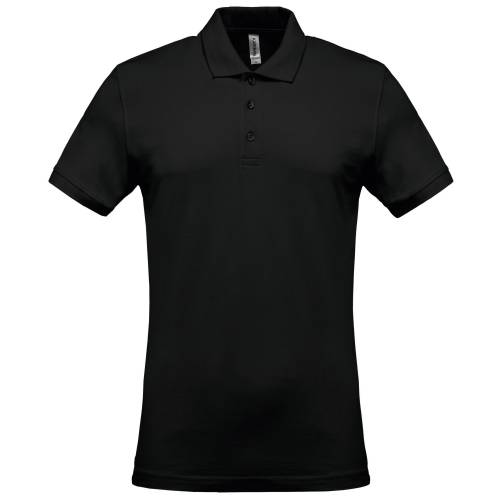 Confection 100% coton piqué prérétréci 180g/m² (gris chiné 90% coton, 10% viscose). Coupe droite. Col et bas de manches en bord-côte 1x1. Patte de boutonnage col 3 boutons ton sur ton. Bande de propreté ton sur ton à l'encolure. Certifié STANDARD 100 by OEKO-TEX®.