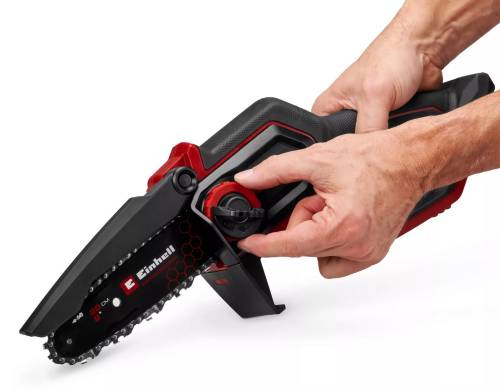 lubrification automatique de la chaîne. Protection contre les surcharges pour une durée de vie prolongée du moteur. Utilisation en toute sécurité grâce au protège-mains et au protège-chaîne flexible. Repose-main avec poignée souple pour une utilisation à deux mains. Conception élégante et légère pour un travail ergonomique. Couvercle de barre de guidage pour un rangement en toute sécurité. Entonnoir à huile inclus pour un remplissage propre.