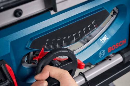 Très maniable grâce à sa conception compacte et sa hauteur de coupe de 70 mm, la meilleure de sa catégorie. Assure une coupe de précision grâce au guide longitudinal à crémaillère et à la butée d’onglet précise. Minimise la poussière grâce aux deux orifices d’aspiration Click & Clean. Zones de serrage pratiques pour fixer les pièces au plateau de la table.