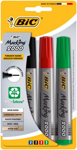 Feutre marqueur indélébile et permanent. Idéal sur papier, carton, plastique, métal et bois. Corps en plastique solide, composé à 51% de matériaux recyclés.