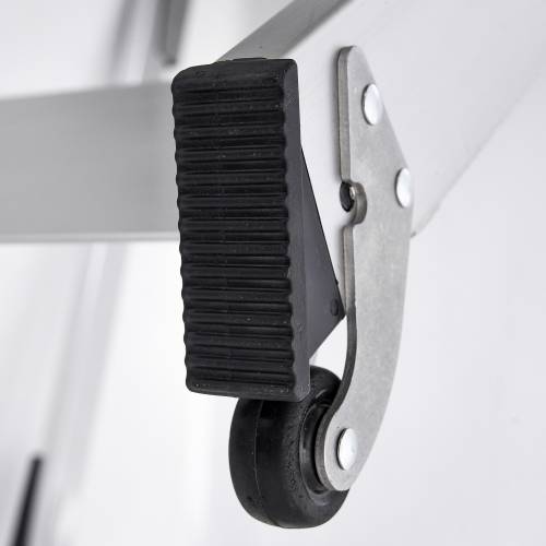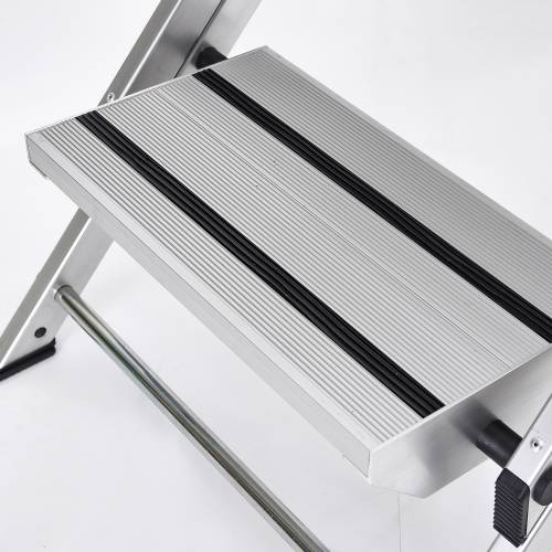 Marchepied en aluminium. Ses marches de 20x36 cm, son garde-corps pliable et son porte-outils avec son crochet porte-seau font du STEP UP un marchepied