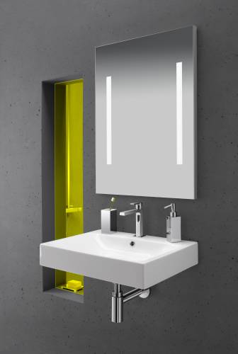 Miroir éclairant avec deux bandes sablées verticales éclairantes (50x3cm). Eclairage LED 4000K, 2x10W.