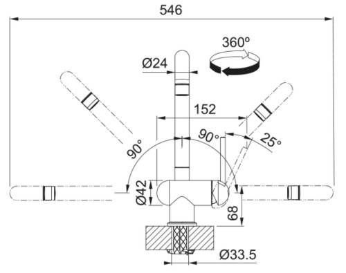 Mitigeur Window à bec rabattable spécial fenêtre (hauteur sous fenêtre minimum de 80mm). Type de cartouche céramique simple. Raccordement : Flexibles inox F12x17. Rotation du bec : 360°. Hauteur 298mm. Embase 50mm. Perçage 35mm.