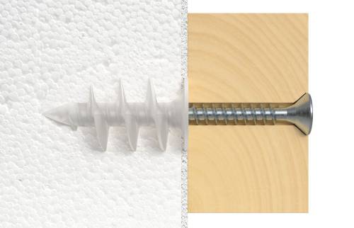 Fixation dans l'isolant pour toutes les applications avec rupture de ponts thermiques. La fixation sur isolant FID est une cheville pour fixer des éléments légers à moyennement lourdes dans des panneaux isolants enduits et non enduits en polystyrène et polyuréthane.La FID se pose manuellement ou avec une visseuse électrique. Le filetage spécial en spirale s'ancre par verrouillage de forme dans le panneau isolant. Les éléments - tels que boites aux lettres, sonnette et détecteurs de mouvements - peuvent être fixés avec une vis 4.5 mm (pour une FID II) ou 6 mm (pour une FID II Plus). Empreinte TX40.