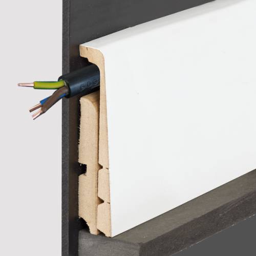 Plinthe en MDF recouverte d’un papier résistant, blanc. Ce profilé permet de recouvrir une plinthe existante sans avoir à la déposer. Gain de temps sur vos chantiers. Peut être peint à la peinture acrylique. Produit prédécoupé pour masquer des hauteurs de 60-80-100 et 120 mm. Usage en intérieur uniquement. Ce profilé peut être installer sur des plinthes carrelage ou bois existantes. Il peut masquer le passage des câbles électriques en les positionnant au dessus de la plinthe existante. Pour la fixation des plinthes à coller, utilisez nos adhésifs colles sèches ou une colle polymère.