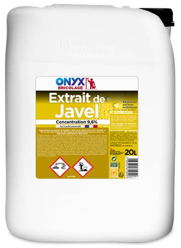 L’extrait de javel 9,6% de chlore actif est un agent décapant, blanchissant concentré. Il convient particulièrement pour rénover et blanchir les pierres brutes, les murs, les terrasses et les façades en retirant les salissures les plus incrustées comme notamment les dépôts engendrés par la pollution. Peut également être utilisé pour blanchir le linge. Economique car concentré et très actif, une faible quantité de produit suffit. L'extrait de javel 9,6% de chlore actif s’utilise soit sous sa concentration d’origine, soit sous forme diluée. Il est possible d'obtenir de l'eau de javel à 2,6% de chlore actif en diluant 1 volume d'extrait de javel avec 3 volumes d'eau.