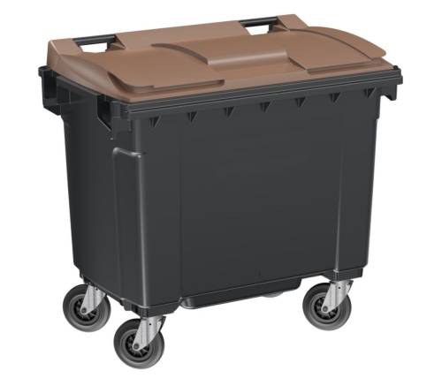 Bac roulant PEHD injecté. Coloris standard anthracite (100% recyclé et recyclable).