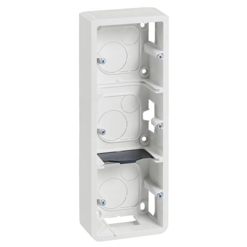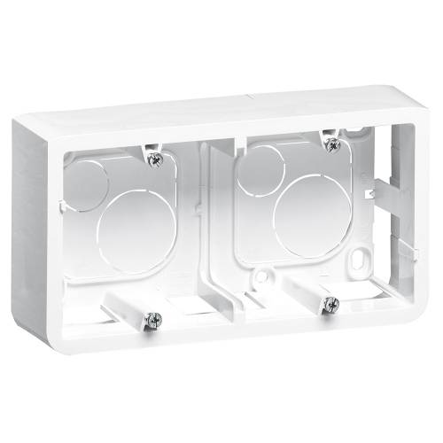 Mosaïc, cadre saillie pour installation en apparent de mécanismes Mosaïc. A utiliser avec le support Batibox. Installation en saillie avec conduits apparents (moulure/goulotte) ou avec conduits encastrés. Livré avec vis.