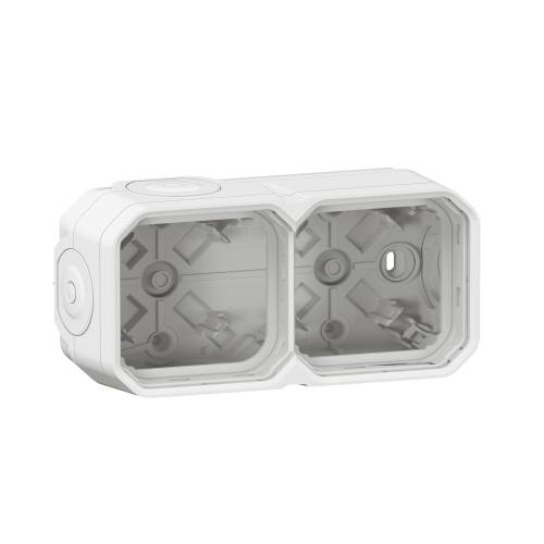 Boîtier étanche en saillie 2 postes horizontaux/verticaux sans cloison avec 4 embouts à membrane Plexo