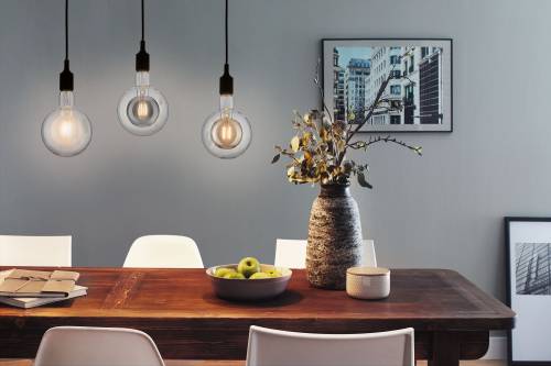 Ampoule LED. Les rétro-globes surdimensionnés tout en verre ne sont pas seulement un accroche-regard décoratif, ils fournissent également une atmosphère intime, comme aux chandelles. Lumière chaude et chaleureuse dans le style du filament de carbone.