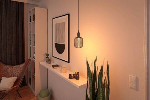 L’ampoule LED Metallic Glow associe une lumière dorée discrète à une coupelle métallique décorative. Grâce à la combinaison d’un cylindre intérieur gravé au laser et d’une fine structure grillagée, ces ampoules conviennent parfaitement aux suspensions ou aux lampes à poser avec douille E27. L’élément lumineux situé à l’extrémité du cylindre intérieur diffuse une lumière parfaitement dirigée vers le bas. Le design intemporel rencontre ici la technologie LED efficace et assure un éclairage d’ambiance confortable et doré.