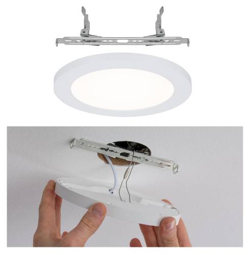 Les dimensions réduites du panneau encastré blanc, dont la capacité atteint les 6 watts, permettent de l'installer sur des faux plafonds à partir d'une profondeur de cavité de 20 mm. Un rail réglable avec des ressorts de retenue permet d'obtenir différents diamètres de montage. Eclairage étendu. Très faible profondeur. Température de couleur: 3000K - Blanc chaud