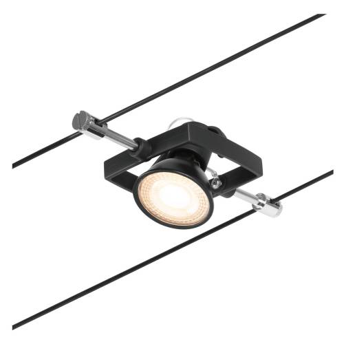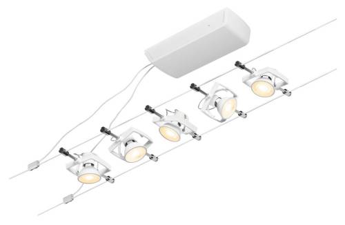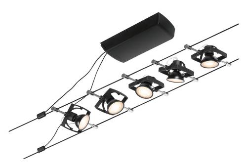 La gamme Mac II s'installe aussi bien sur un mur qu'au plafond et offre des possibilités d'aménagement illimitées. Matière métal et plastique. Droites, pentues ou resserrées. Les systèmes câbles s'intègrent dans toutes les pièces et résolvent les problèmes d'installation. Personnalisable, le kit de base se complète avec des spots individuels, des renvois d'angles et autres accessoires. Le câble d'une longueur de 10 m peut être divisé au milieu pour que le système soit tendu sur max. 5 m. Ce système permet une diffusion de la lumière optimale et peut être facilement étendu en cas de besoin d'éclairage plus élevé. Une seule prise électrique est nécessaire pour la répartition des luminaires dans l'ensemble de la pièce. Les systèmes dotés de la technique 12 V CC (courant continu) ne sont pas gradables via un variateur mural. Classe de protection II. Vendu sans ampoule.