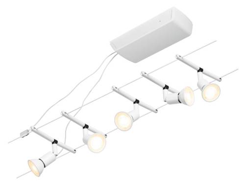 La gamme Salt s'installe aussi bien sur un mur qu'au plafond et offre des possibilités d'aménagement illimitées. Matière métal et plastique. Droites, pentues ou resserrées – les systèmes câbles s'intègrent dans toutes les pièces et résolvent les problèmes d'installation. Personnalisable, le kit de base se complète avec des spots individuels, des renvois d'angles et autres accessoires. Le câble d'une longueur de 10 m peut être divisé au milieu pour que le système soit tendu sur max. 5 m. Ce système permet une diffusion de la lumière optimale et peut être facilement étendu en cas de besoin d'éclairage plus élevé. Une seule prise électrique est nécessaire pour la répartition des luminaires dans l'ensemble de la pièce. Les systèmes dotés de la technique 12 V CC (courant continu) ne sont pas gradables via un variateur mural. Classe de protection II. Vendu sans ampoule.