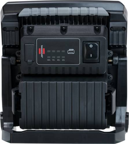 Projecteur de chantier LED Multi Battery System 4000MA rechargeable (40W, 4500lm, IP65, compatible avec 5 standards de batterie 18V Powertool : Bosch Professional, Makita, Dewalt, Milwaukee, Metabo). Robuste projecteur de chantier avec 4 modes d'éclairage (100% / 75% / 50% / 25%). Projecteur est équipé d'un support de maintien anti-basculement, d'une lentille de protection de la LED et dispositif de protection de face anti-chocs en caoutchouc. Poignée de transport ergonomique. Indice des résistance aux chocs : IK08. Classe de protection : III. Montage sur trépied possible grâce aux trous prévus.