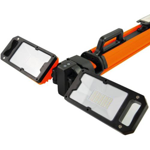Ultra-compacte en position fermée et avec une poignée pour faciliter le transport. Robuste. Les lampes sont parfaitement protégées pour une plus grande durée de vie. Se déploie très rapidement en seulement 5 secondes. Les 2 têtes sont modulables et orientables à 360° afin de s’adapter parfaitement au chantier. Cela permet d’obtenir une lumière rasante sur les murs ou d’avoir un éclairage d’ambiance. 2 types de lumières possibles : chaude ou froide. Fonctionne en puissance moyenne lors du rechargement sur secteur. IP54.