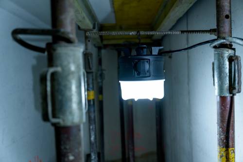 Projecteur de chantier LED 50W avec 5m de câble (H07RN-F 3G1,5) avec un éclairage non éblouissant, une diffusion panoramique 360 degrésLampe de chantier LED 360° avec interrupteur, utilisation en extérieur grâce à un indice de protection IP54 (protégé contre la poussière et les projections d'eau), câble RN résistant aux hydrocarbure. Idéal pour les travaux de peinture ou l'utilisation sur les chantiers. Projecteur de chantier LED robuste et stable avec un crochet de suspension et commutable par un interrupteur marche/arrêt disposant de deux modes d'éclairage (100% - 50%)Phare de chantier LED rechargeable avec une puissance de 50W pouvant être posé à l'envers (sur la tête d'éclairage), suspendu ou fixé sur un trépied. IP54. IK08.