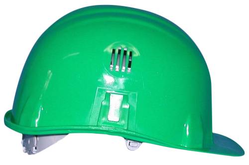 Casque constitué de : une calotte en polyéthylène moulée sous pression avec aérations réglables type BTP, un harnais comportant une coiffe en polyéthylène basse densité, un bandeau de tour de tête avec serre-nuque à glissière, en polyéthylène basse densité, amovible et réglable de 53 à 63cm, monté avec une garniture de confort 32 cm. Le casque de protection est résistant aux très basses températures (-20°C). Le casque peut recevoir un marquage frontal (55x50mm), latéral (110x18mm) ou arrière (50x30mm) par estampillage à chaud de votre sigle ou raison sociale.