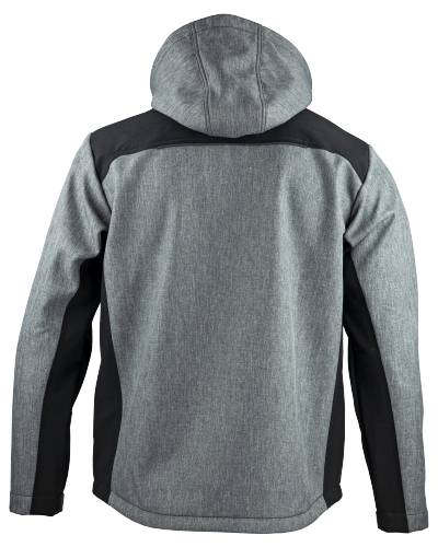 Veste Softshell bicolore à capuche amovible, 3 couches 100% polyester - 480g/m², membrane imper-respirante imperméabilité 5000mm, respirabilité 2000g/m²/24h. Ouverture devant par zip waterproof. 3 poches (2 basses + 1 poitrine) fermées par zip. Capuche réglable par stoppeurs, détachable par zip. Dos plus long. Poignets réglables par patte PVC. 1 poche intérieure "téléphone" plaquée. Coutures intérieures gansées. Passepoils rétroréfléchissants noirs aux épaules et empiècement dos. Marquage silicone ton sur ton manche droite.