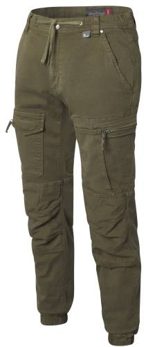 Tissu principal 98% coton Gots fibres issues de l'agriculture biologique, 2% elasthanne, 290g/m². Tissu renforcé Ripstop 100% coton, 195g/m². Ceinture semi-élastiquée et cordon de serrage. Nombreuses poches. Genoux renforcés. Matière coton, finition peau de pêche. Bas de jambe resserrées, élastiquées.