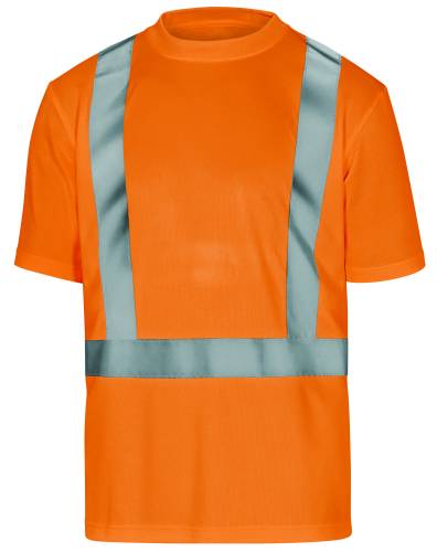 Tee-shirt manches courtes, maille 100% polyester, 160 g/m². Col rond. Bandes rétro-réfléchissantes cousues couleur argent, montage baudrier.