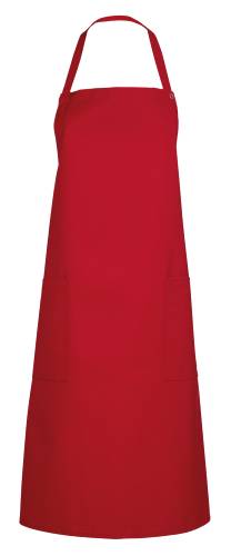 Tablier 65% polyester, 35% coton 210g/m². Tresse du cou réglable par grippers. 2 poches plaquées. Hauteur totale 95cm.