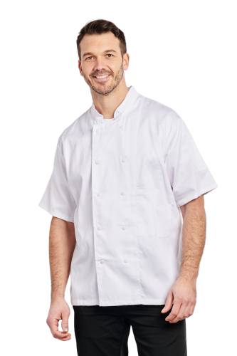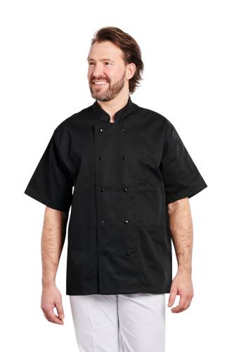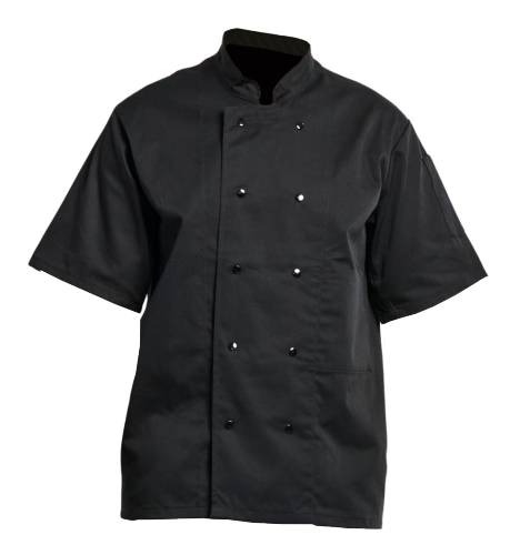 Veste blanche 100% coton - 210g/m², veste noire 65% polyester, 35% coton - 245g/m².