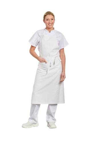 Tablier à bavette 100% coton sergé, 220g/m². Cordon 100% polyester. Une poche ventrale.
