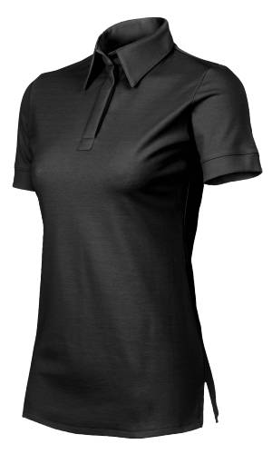 Polo femme, coupe ajustée, col chemise. Encolure 2 boutons, fentes côtés. très bonne tenue dans le temps. Maille 60% coton 40% polyester.