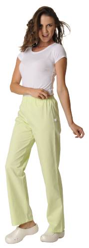 Pantalon 65% polyester 35% coton. Pas de poche, pas de braguette. Entrejambe 75 cm. Taille totalement élastiquée.
