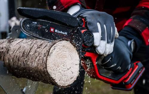 lubrification automatique de la chaîne. Protection contre les surcharges pour une durée de vie prolongée du moteur. Utilisation en toute sécurité grâce au protège-mains et au protège-chaîne flexible. Repose-main avec poignée souple pour une utilisation à deux mains. Conception élégante et légère pour un travail ergonomique. Couvercle de barre de guidage pour un rangement en toute sécurité. Entonnoir à huile inclus pour un remplissage propre.