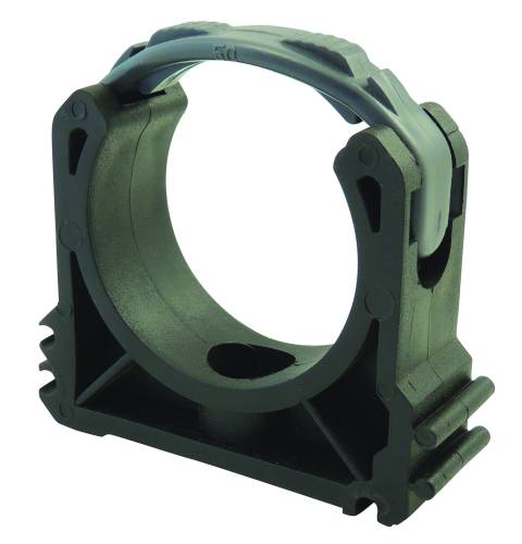 Collier de fixation murale ou au sol pour tube PVC pression. Avec clip de sécurité à partir du diamètre 40mm.