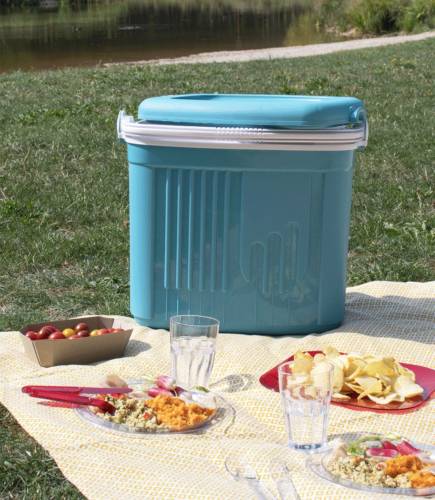 Idéal pour mettre des bouteilles de 2L debout. Isolation corps et couvercle 11h. Verrouillage par la poignée. Intérieur blanc.
