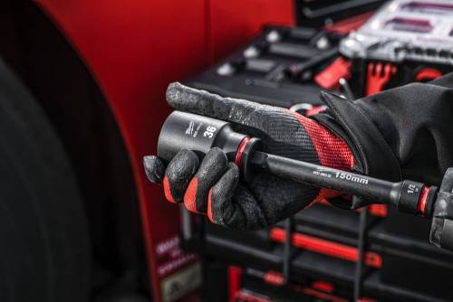 L'acier Shockwave™ Impact Duty (Chrome-Molybdène) est un acier allié de haute qualité qui offre une résistance et une durabilité ultimes. Marques de diamètre estampées et remplies d'encre et numéro de pièce gravé au laser pour la résistance à l'usure. Conception à détente à bille pour une rétention supérieure de la douille d'impact. Conception à double trou et rainure pour les accessoires de sécurité.