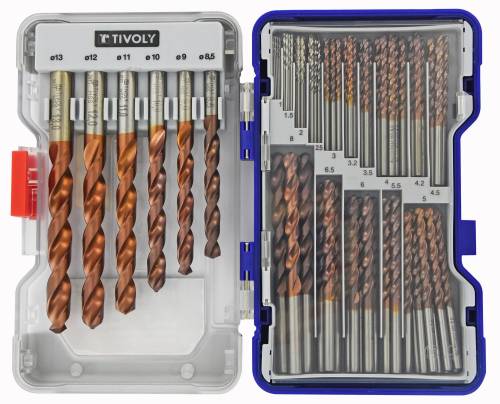 Coffret RANGER : Ø 1- 1,5 (x5 pcs) - 2 - 2,5 - 3 (x 10pcs) - 3,2 - 3,5 (x5 pcs) - 4 (x10 pcs) - 4,2 - 4,5 (x5 pcs) - 5 (x10 pcs) - 5,5 (x3 pcs) - 6 (x5 pcs) - 6,5 - 8 (x3 pcs) - 8,5 - 9 - 10 - 11 - 12 - 13mm (x1 pc)