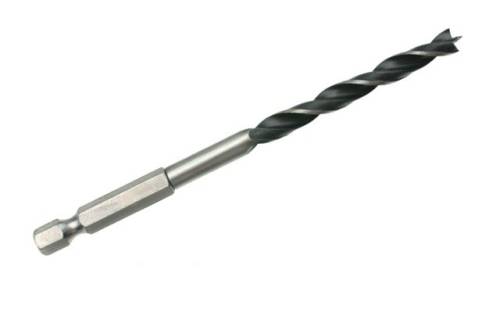 Foret bois queue 6 pans 6,35 mm. Foret 3 pointes. Taillage par meulage. Pointe de centrage.
