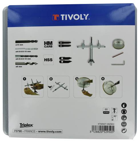 Mèche à deux couteaux, pour le bois, le plastique, le plâtre, l'aluminium. Très bonne étanchéité de la cloche, ne laisse pas s'échapper la poussière.