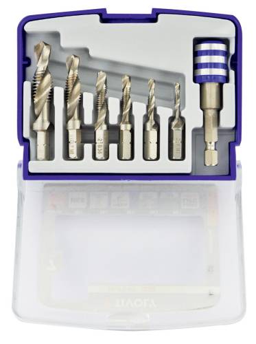 Pour le perçage et taraudage en une seule passe des parois fines. Entrée droite. Queue hexagonale.