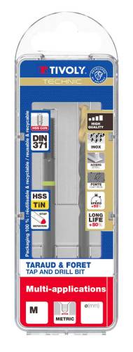 Taraud et foret performants pour l'acier, l'inox, la fonte et les plastiques, particulièrement adaptés aux taraudages débouchant. Le jeu foret + taraud permet de toujours disposer du bon diamètre de foret pour réaliser un taraudage optimal. Permet un taraudage facile et précis dans les matières résistantes, aciers inoxydables, aciers, fontes. La pointe du foret permet un autocentrage facile du foret sur les surfaces les plus lisses. Le revêtement Tin du foret sert de bouclier thermique, ce qui permet d'accroître la durée de vie ainsi que les conditions de coupe. Réduit fortement l'effort axial demandé. La queue à 3 méplat du permet une transmission maximale du couple et évite la rotation de l'outil dans le mandrin. Le traitement Steam et la conicité du taraud évite le collage à froid et réduit le coefficient de frottement. L'entrée GUN permet le dégagement vers l'avant du copeau.