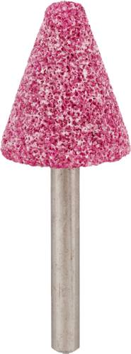 Meule céramique sur tige, corindon affiné, pour l'élimination de bavures, le lissage de cordons de soudure et le ponçage de finition de surfaces, pour métal, verre, céramique et matière plastique. Pour perceuses et ébavureurs, vitesse de rotation maxi 30 000tr/mn.