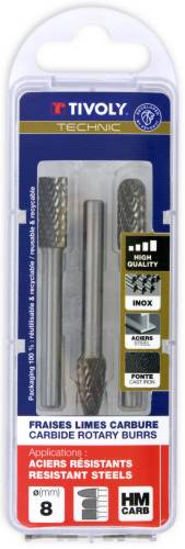 Composition du coffret : 1 fraise cylindrique + 1 fraise cylindrique à rayon + 1 fraise ogive