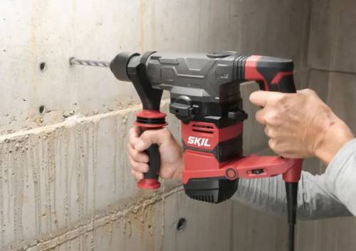 Perforateur pneumatique en forme de L avec trois fonctions (perçage avec percussion, désactivation de la percussion pour les travaux de perçage normaux et désactivation de la rotation pour les travaux de burinage). Le système de réduction des vibrations assure un confort de travail optimal et de faibles vibrations. Système « SDS+ » pour un changement de foret rapide et facile. Carter de vitesse robuste en magnésium. Embrayage de sécurité en cas de blocage de l’outil. Molette de présélection de vitesse pour un travail optimal. Poignée bi-matière pour plus de confort et une maîtrise parfaite. Poignée latérale anti-vibration réglable pour un maniement sûr à deux mains avec peu de vibrations. Jauge de profondeur réglable pour un contrôle exact de la profondeur de perçage.