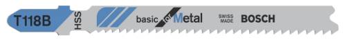 Lame de scie sauteuse Basic for Metal pour des découpes rectilignes dans le métal. Denture ondulée et fraisée idéale pour les découpes sans exigence particulière. Lame en acier trempé à coupe rapide de haute qualité pour la découpe de tôles standards non perforées. Convient à toutes les scies sauteuses à emmanchement en T. Pour tôles en acier, profilés...