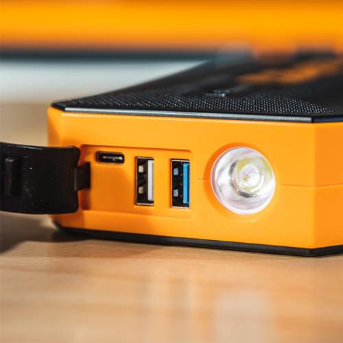 Booster de démarrage portable multifonction 12V. Courant de démarrage : 600A. Courant de décollage : 1500A. Type de batterie : 4 cellules LifePo4. Capacité de la batterie : 25000mAh. Dispositif de protection contre l'inversion de polarité, court-circuit, surintensité, surcharge et surtension thermique.