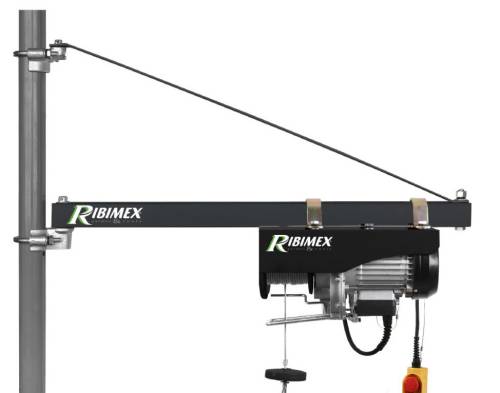Potences pivotantes en acier laqué pour palans électriques.